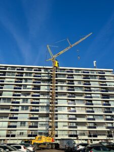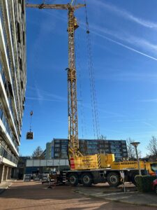 Afgelopen week zijn de dakdekkers begonnen met de renovatie van het dak van het hoge gebouw van Driehoorne (gebouw A). Met een imposante hijskraan zijn allereerst alle benodigde materialen naar het dak gehesen. Mede door het mooie weer van de afgelopen dagen, hebben de dakdekkers lekker door kunnen werken. Nadat de dakbedekking is vernieuwd, zullen de dak ventilatoren vervangen worden door energiezuinige dak ventilatoren en ook op dit dak worden zonnepanelen geplaatst. Zo zetten we opnieuw een belangrijke stap om Driehoorne duurzamer en toekomstbestendig te maken.